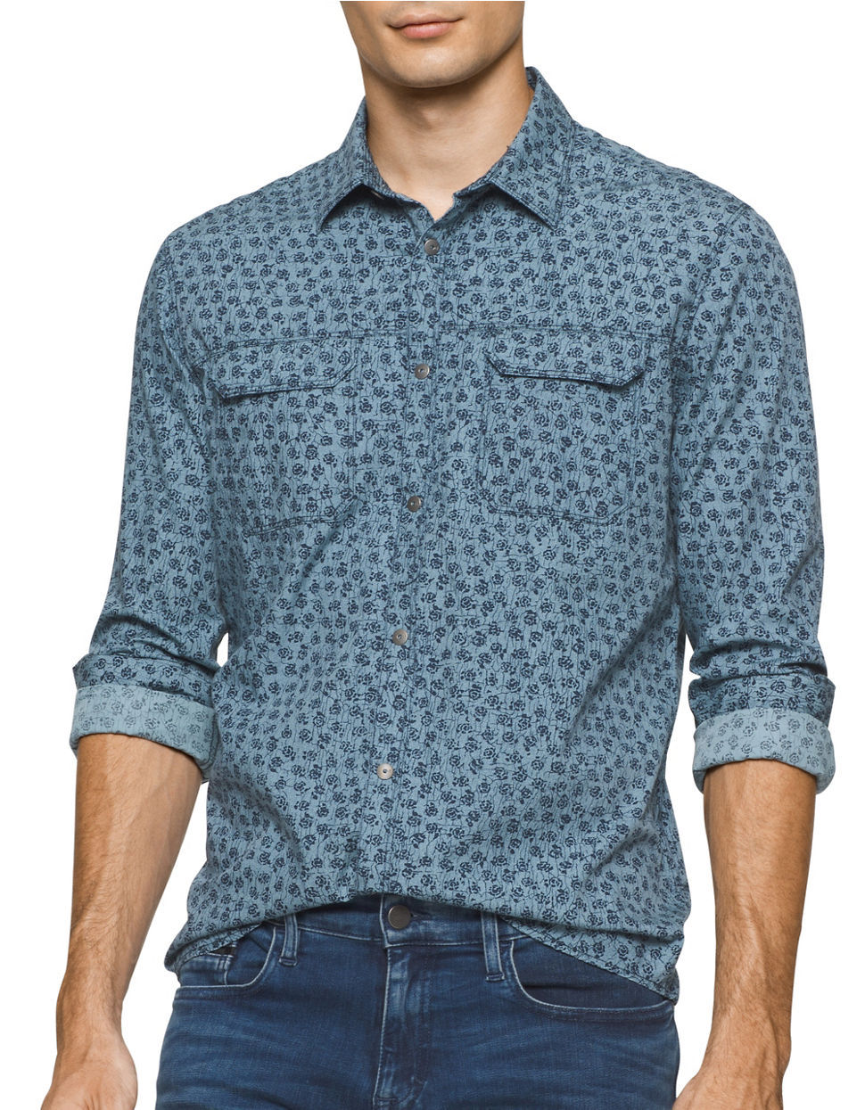 Áo sơ mi dài tay Calvin Klein Jeans, Xanh phối đen LMS