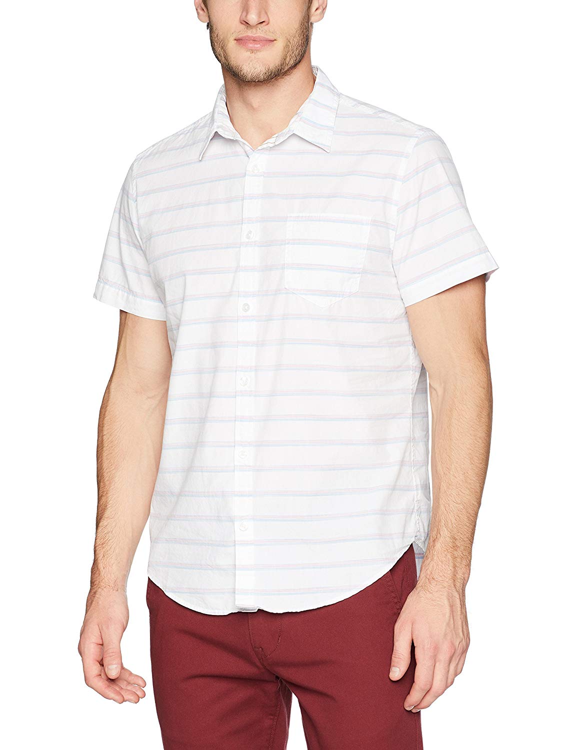 Áo sơ mi nam calvin klein Jeans ngắn tay trắng sọc ngang xanh đỏ nhỏ