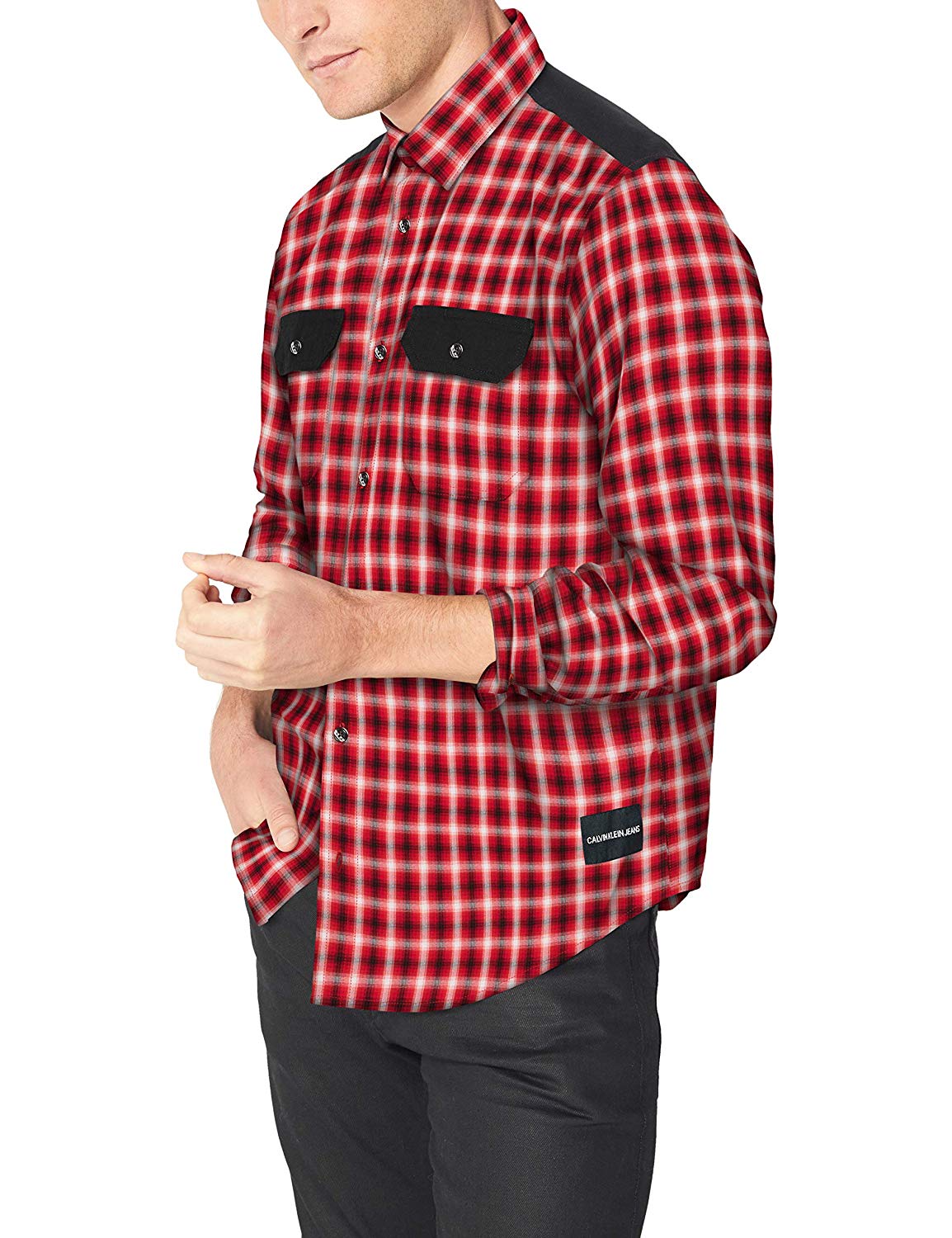 Áo sơ mi nam calvin klein Jeans tay dài caro đỏ phối đen 2 túi