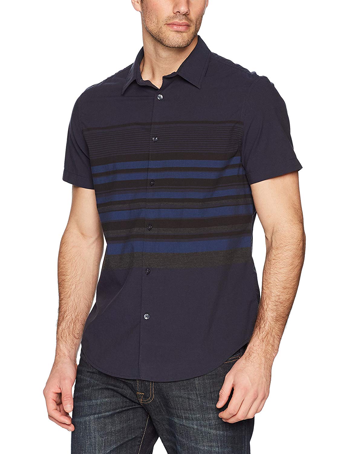 Áo sơ mi nam Calvin klein ngắn tay xanh đen sọc ngang phối đen Hàng xách tay USA - 100% Cotton Made in: India Brand new with full Tag