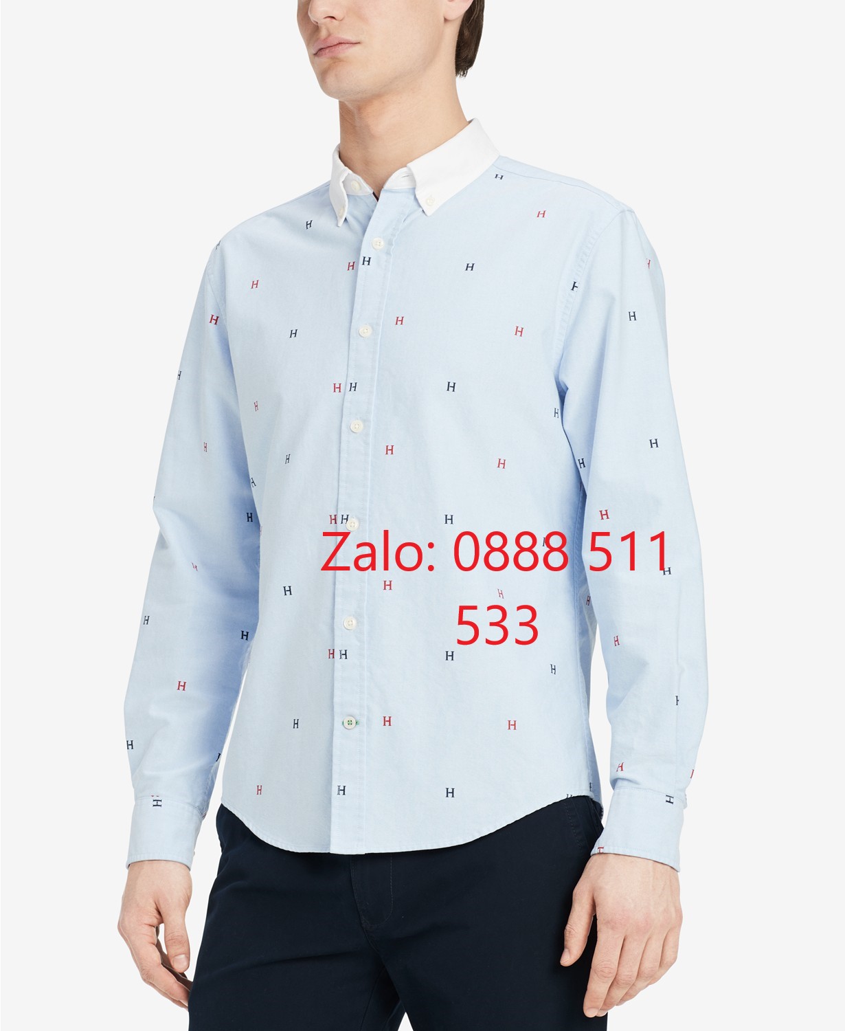 Áo sơ mi nam Tommy hilfiger xanh with H cổ phối trắng Hàng xách tay 100% Cotton oxford Size : SML Made in: China