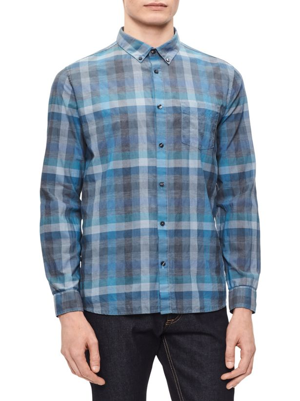 Áo sơ mi nam calvin klein dài tay caro xanh rêu
