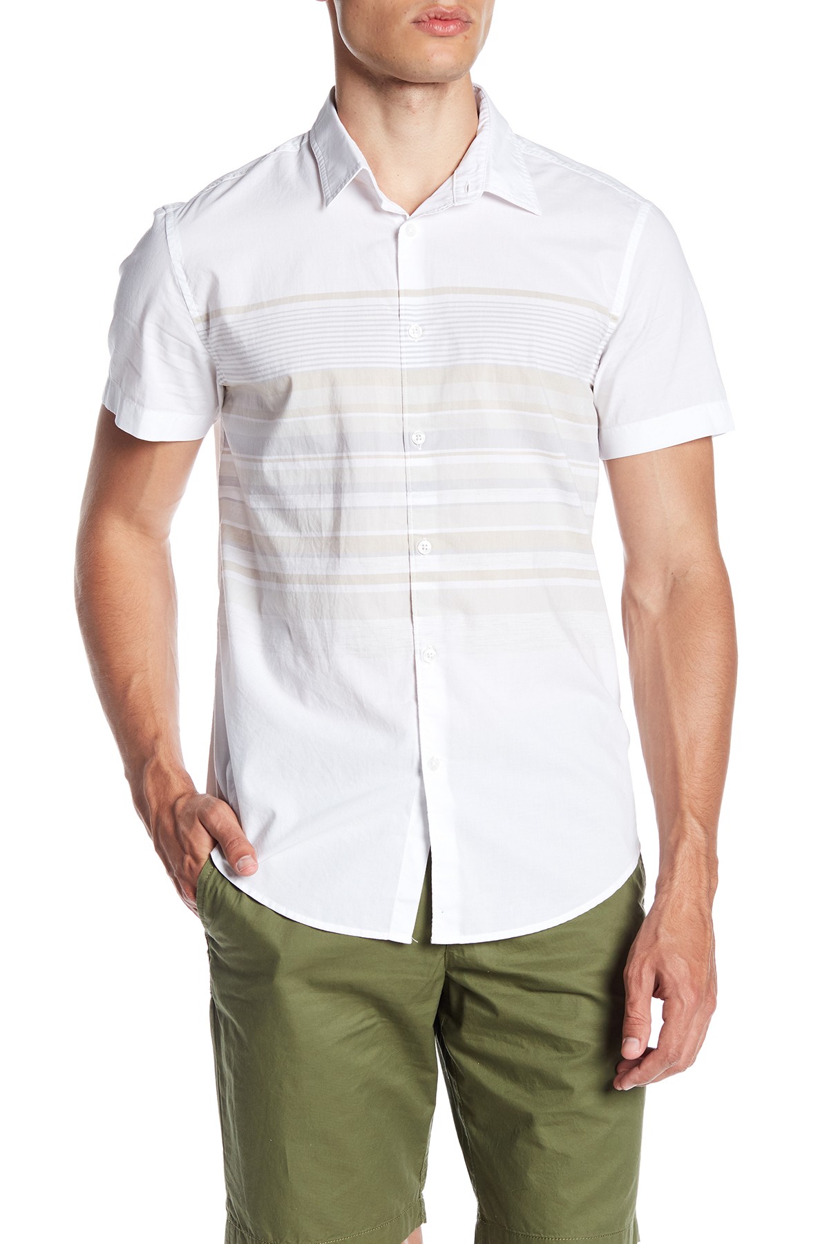 Áo sơ mi nam calvin klein Jeans trắng phối sọc nâu