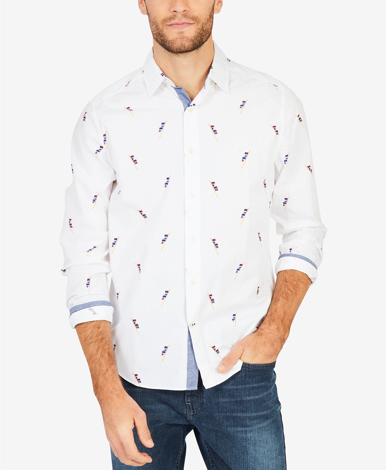 Áo sơ mi nam Nautica tay dài trắng phối