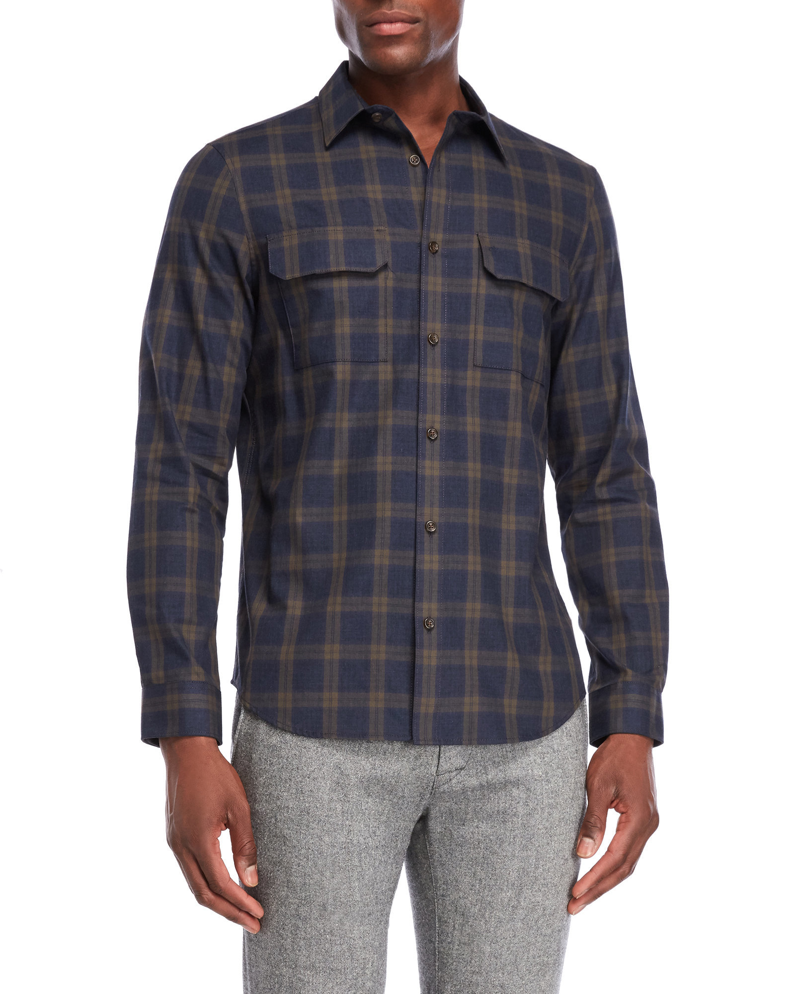 Áo sơ mi nam calvin klein tay dài caro 2 túi