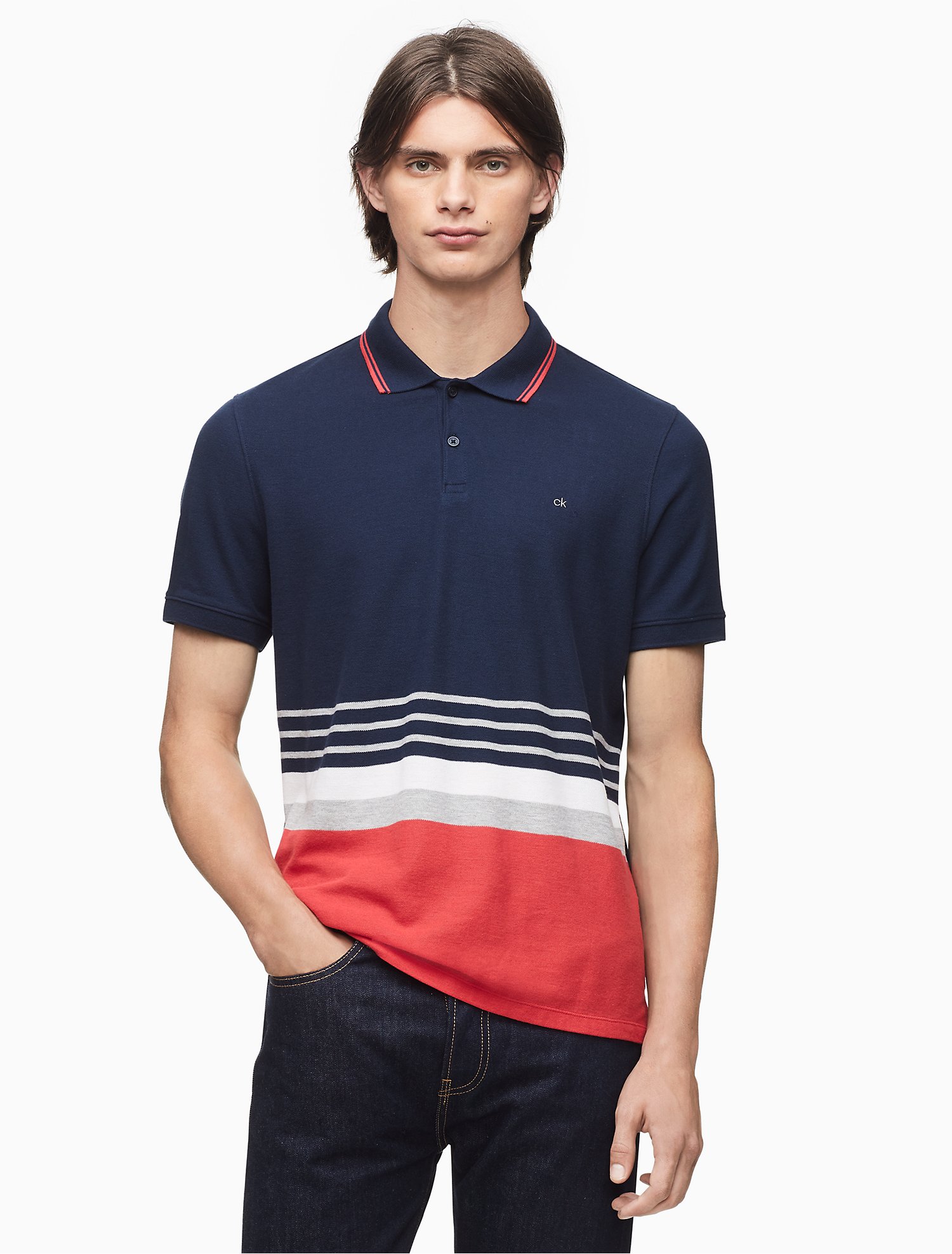 Áo thun nam calvin klein xanh đen phối đỏ dưới with logo