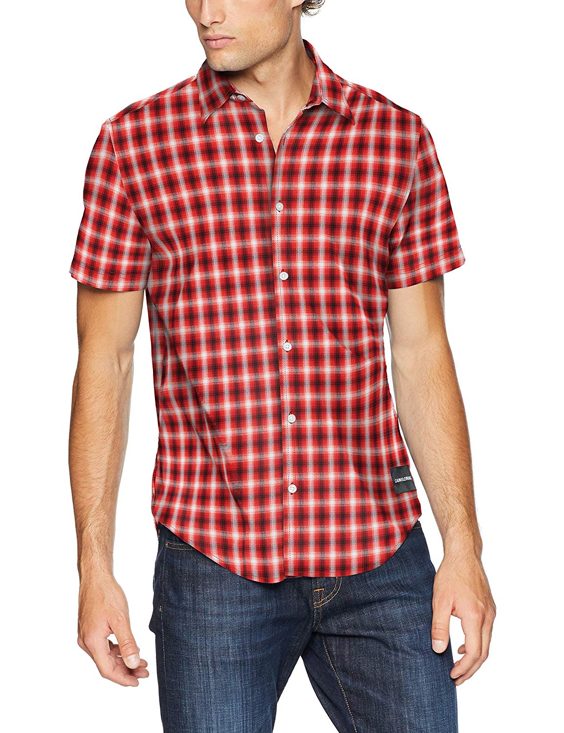 Áo sơ mi nam calvin klein Jeans ngắn tay caro đỏ đen