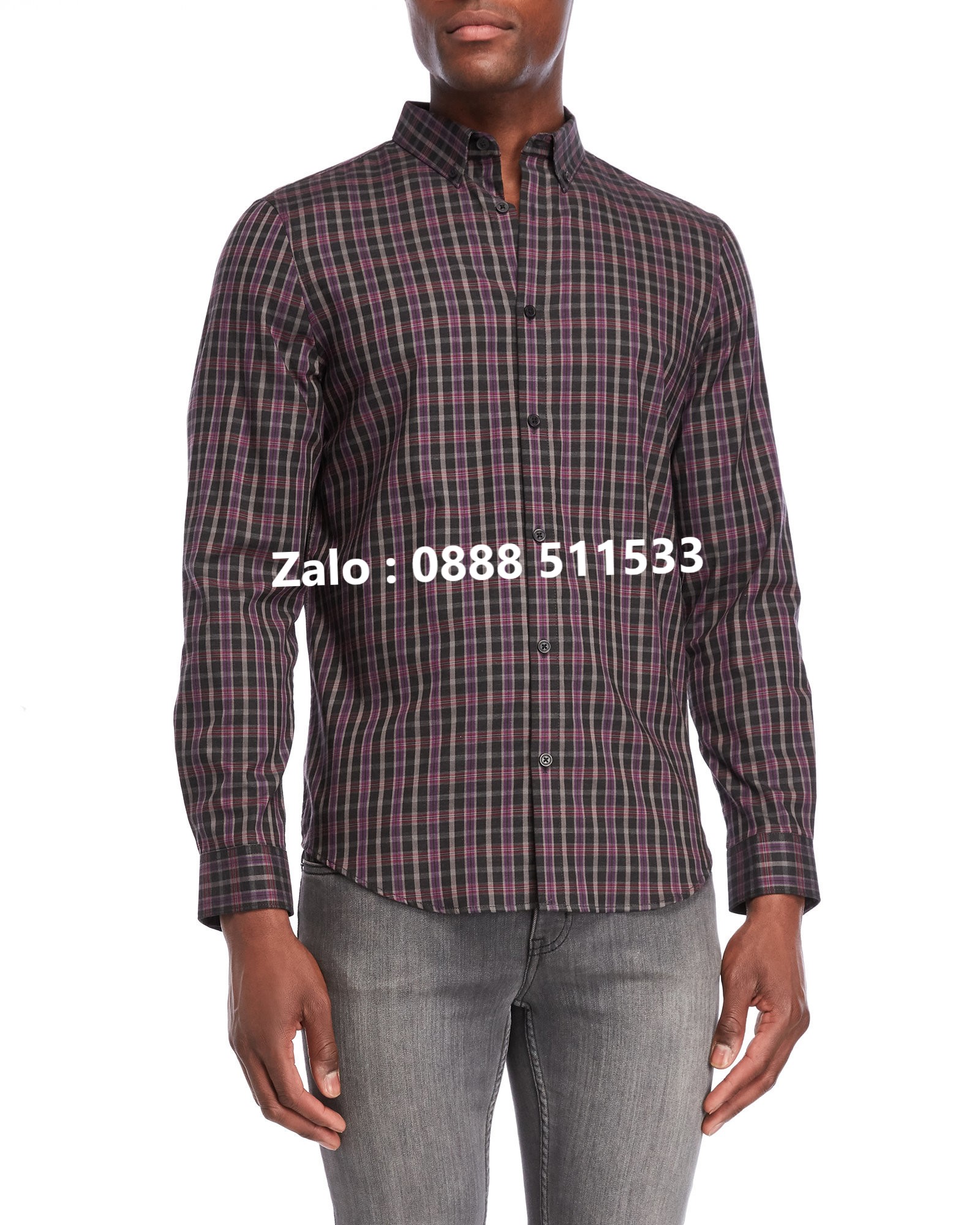 Áo sơ mi nam calvin klein dài tay caro cabernet