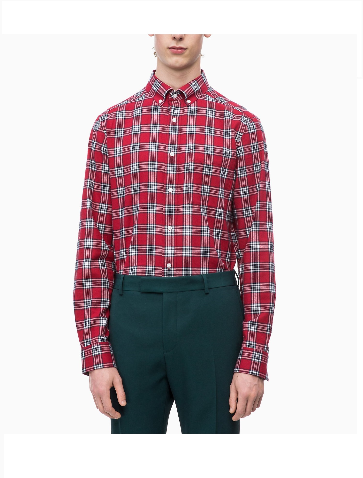 Áo sơ mi nam calvin klein dài tay caro đỏ