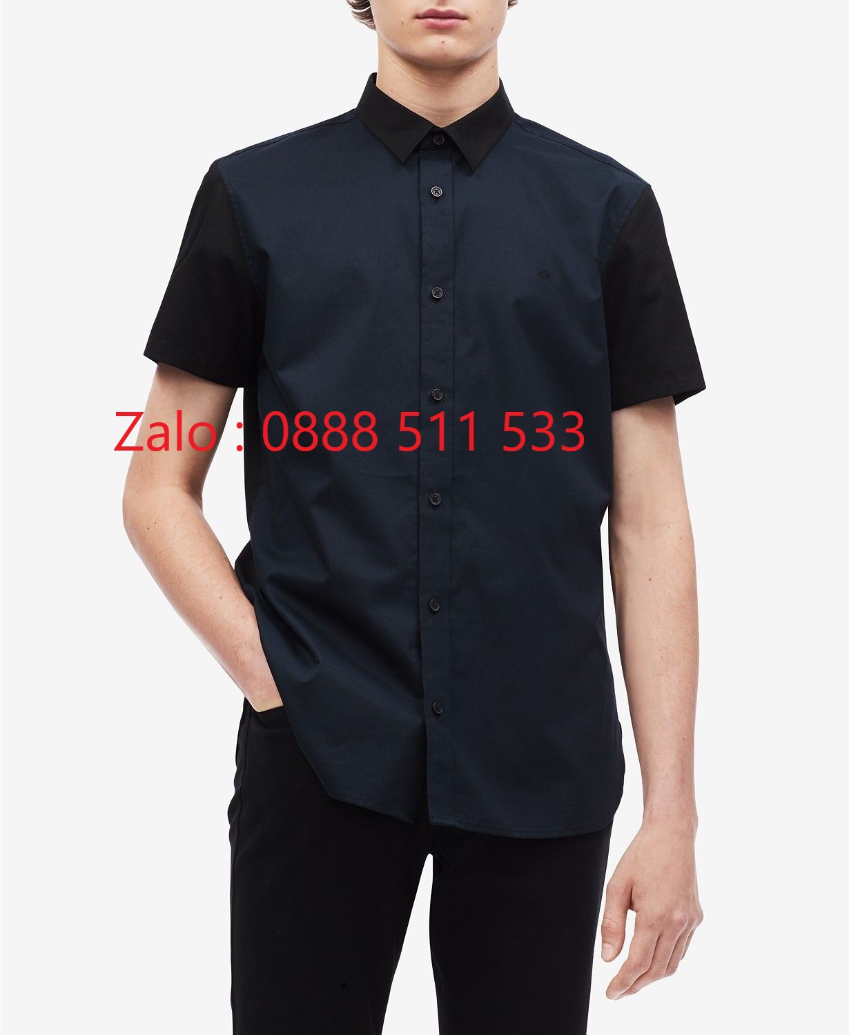 Áo sơ mi nam calvin klein ngắn tay đen phối tay xanh Navy