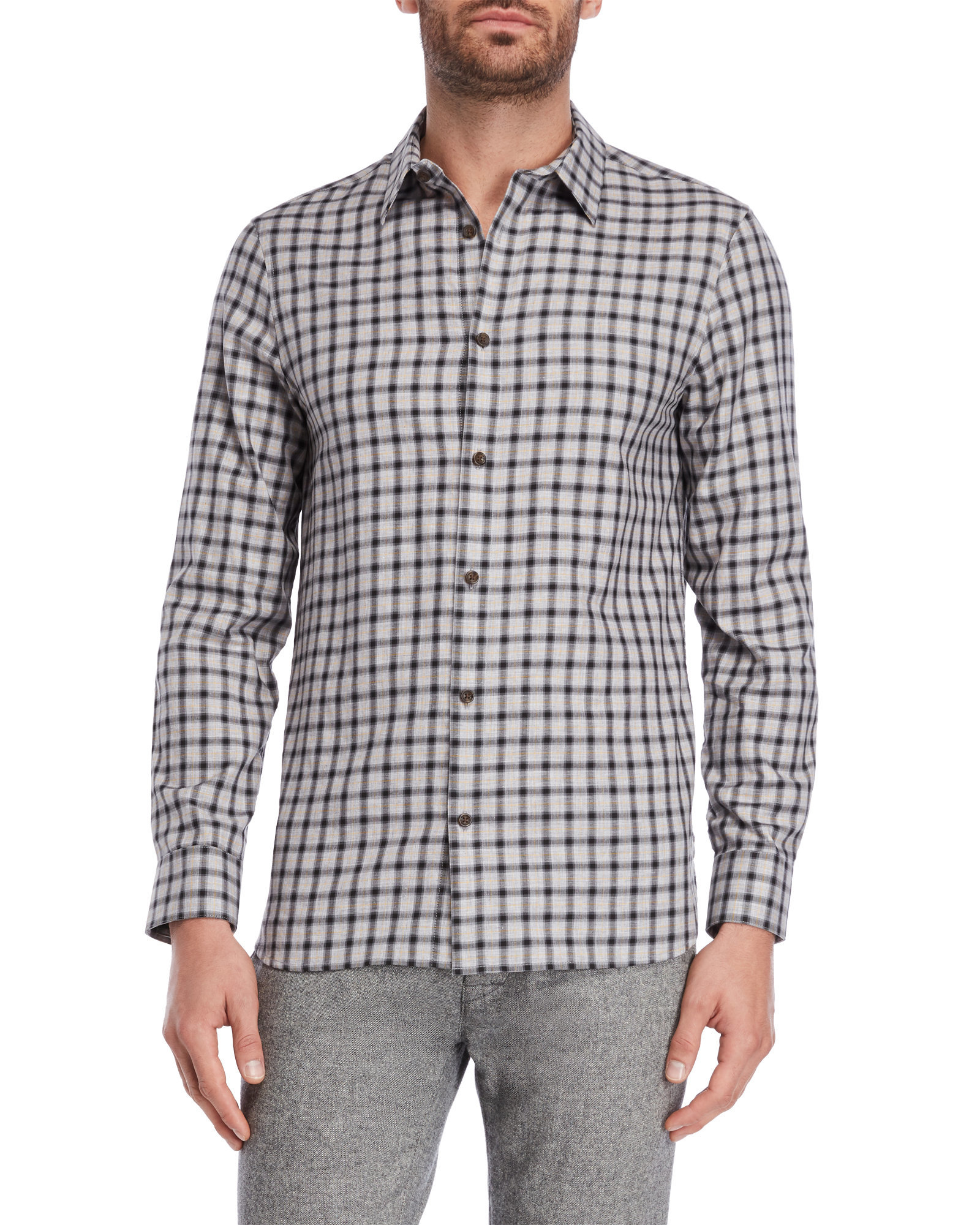 Áo sơ mi nam calvin klein tay dài caro đen vàng