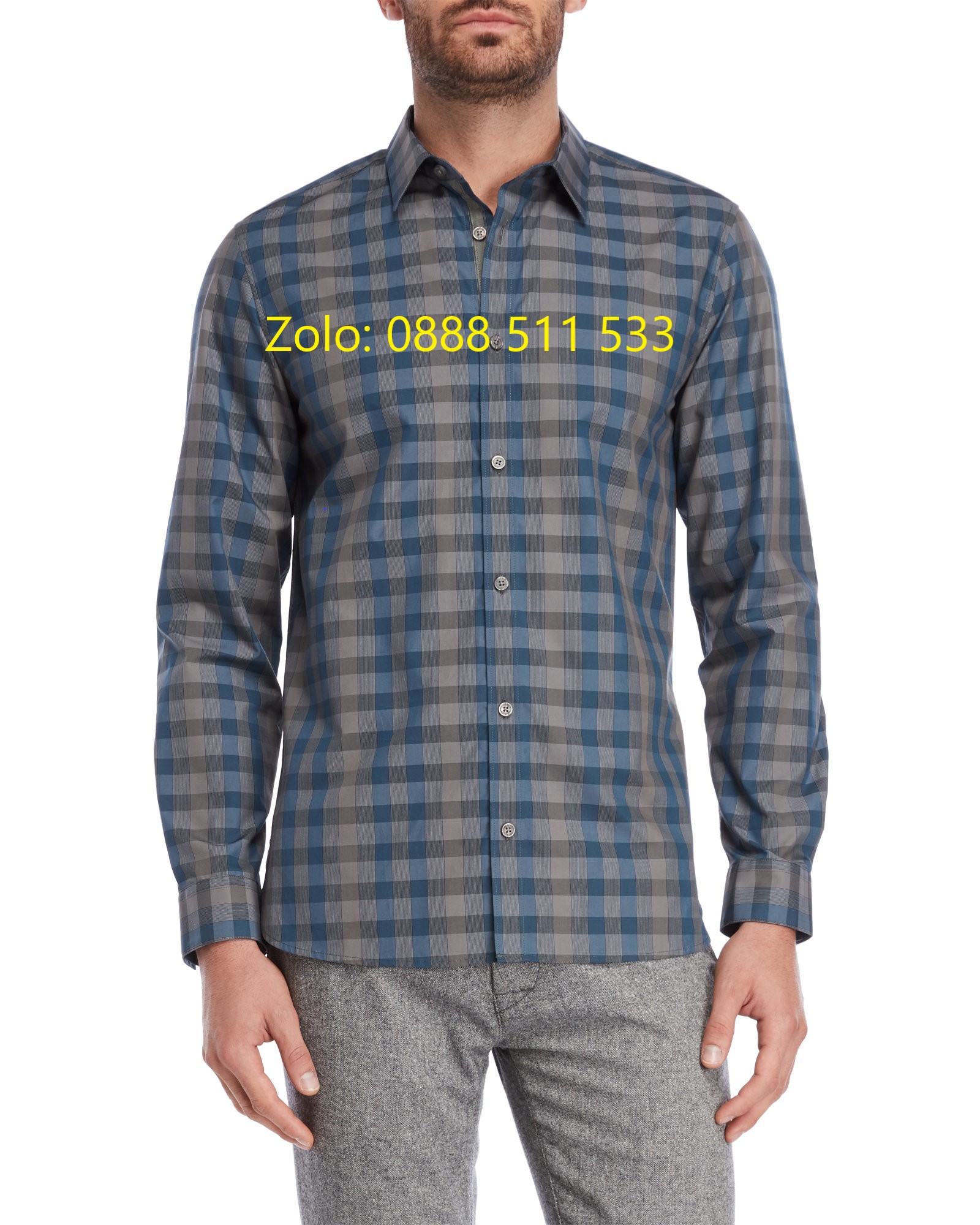 Áo sơ mi nam calvin klein dài tay caro xanh rêu S