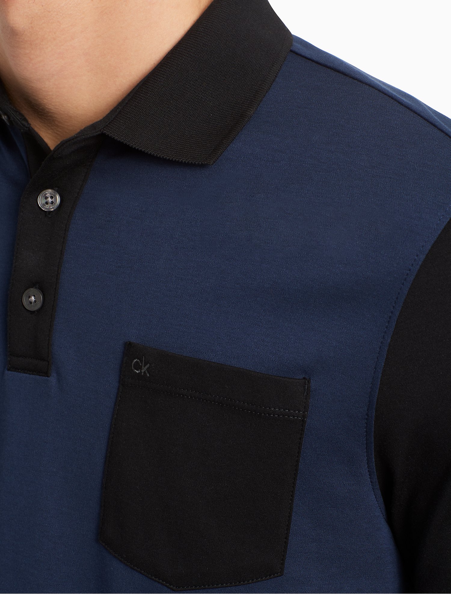 Áo sơ mi nam Calvin klein xanh navy cổ đen túi đen logo