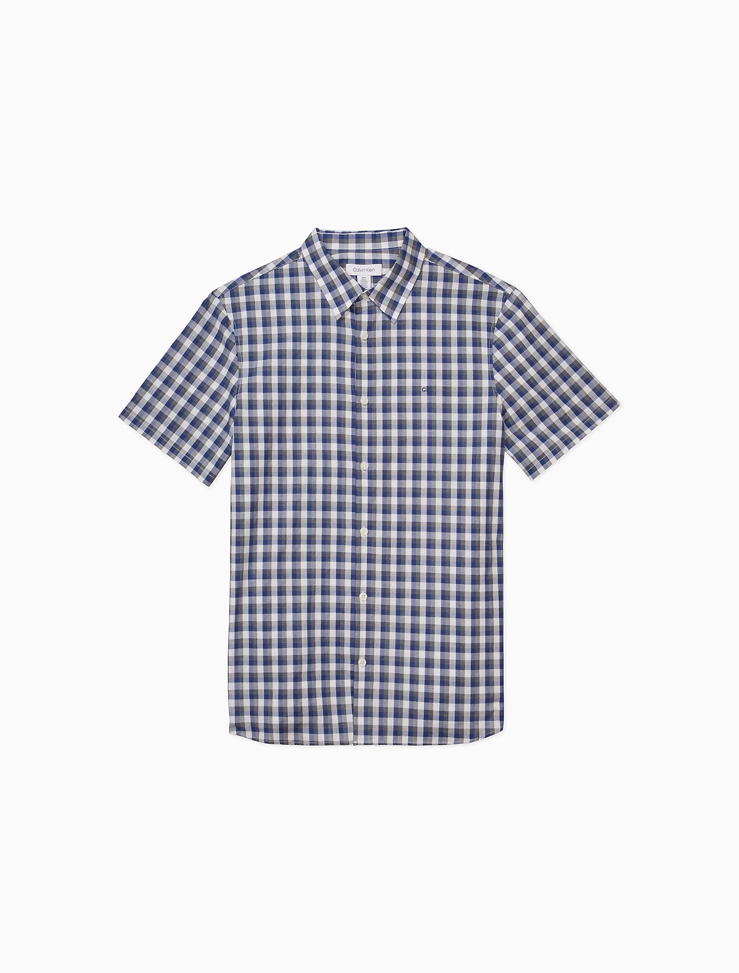 Áo sơ mi nam calvin klein ngắn tay caro xám with logo