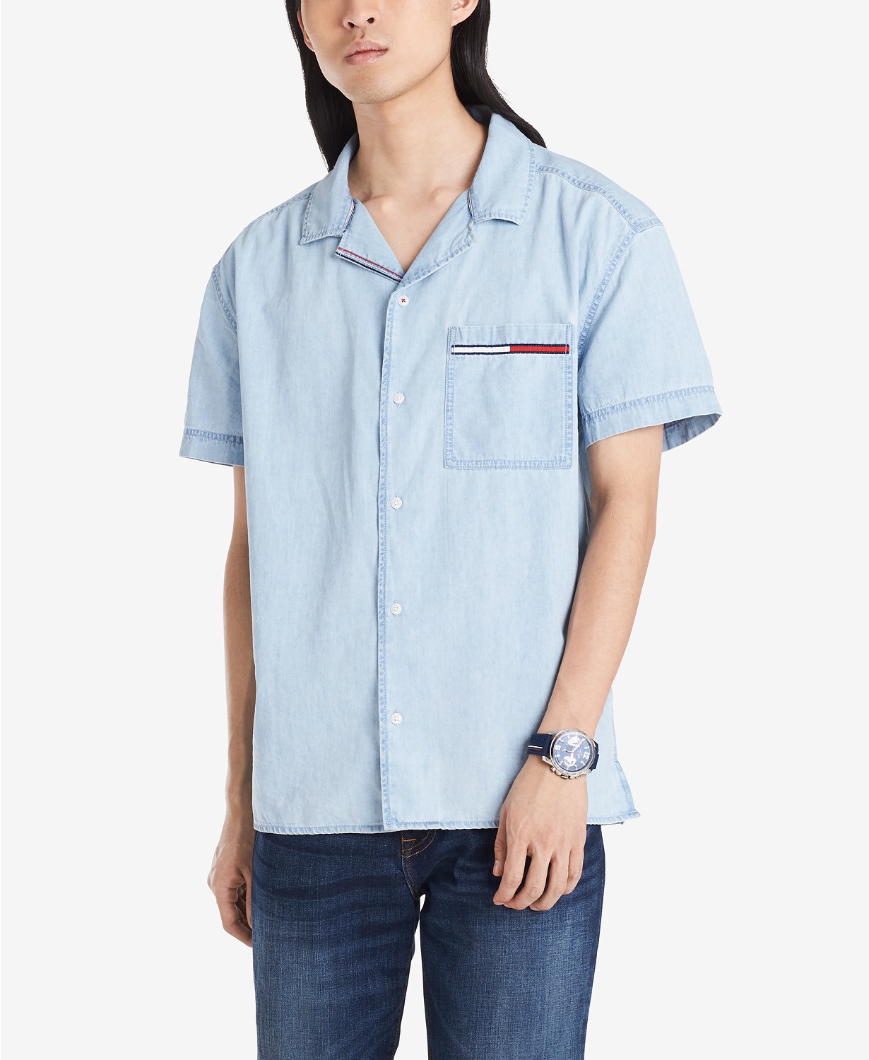 Áo sơ mi nam Tommy Hilfiger denim có túi vạt ngang lưng phồi chữ