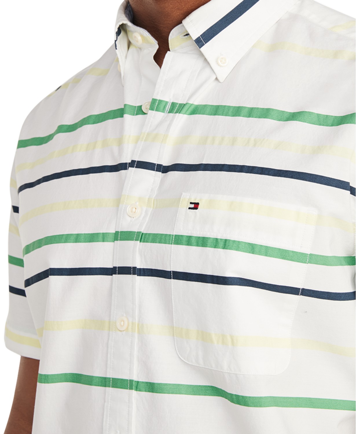 Áo sơ mi nam Tommy Hilfiger ngắn tay trắng sọc ngang xanh lá