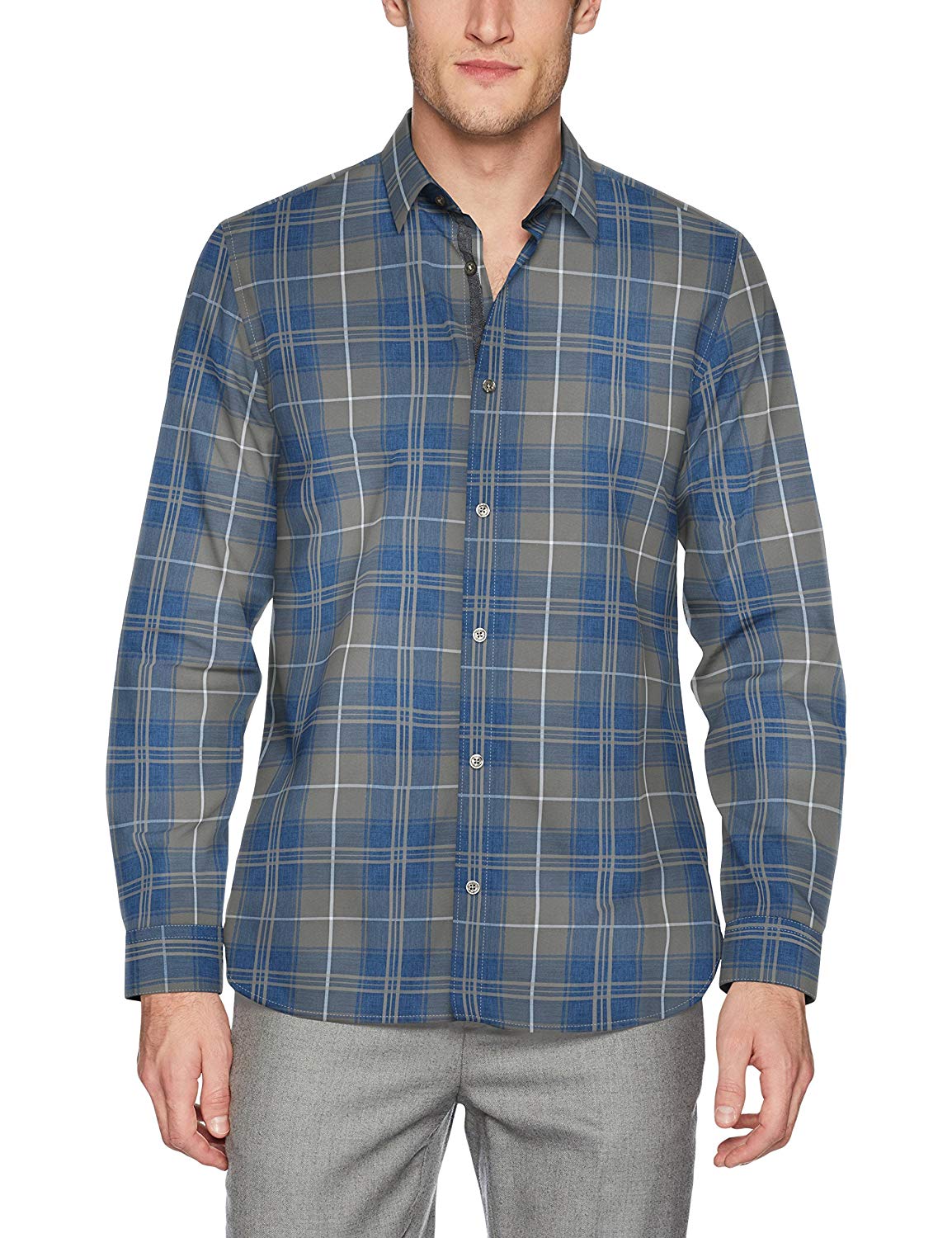 Áo sơ mi nam calvin klein tay dài caro xám xanh