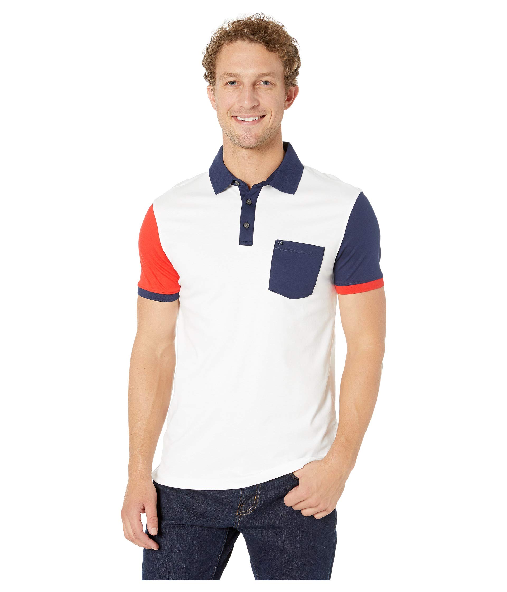 Áo thun nam calvin klein trắng phối cổ xanh túi with logo