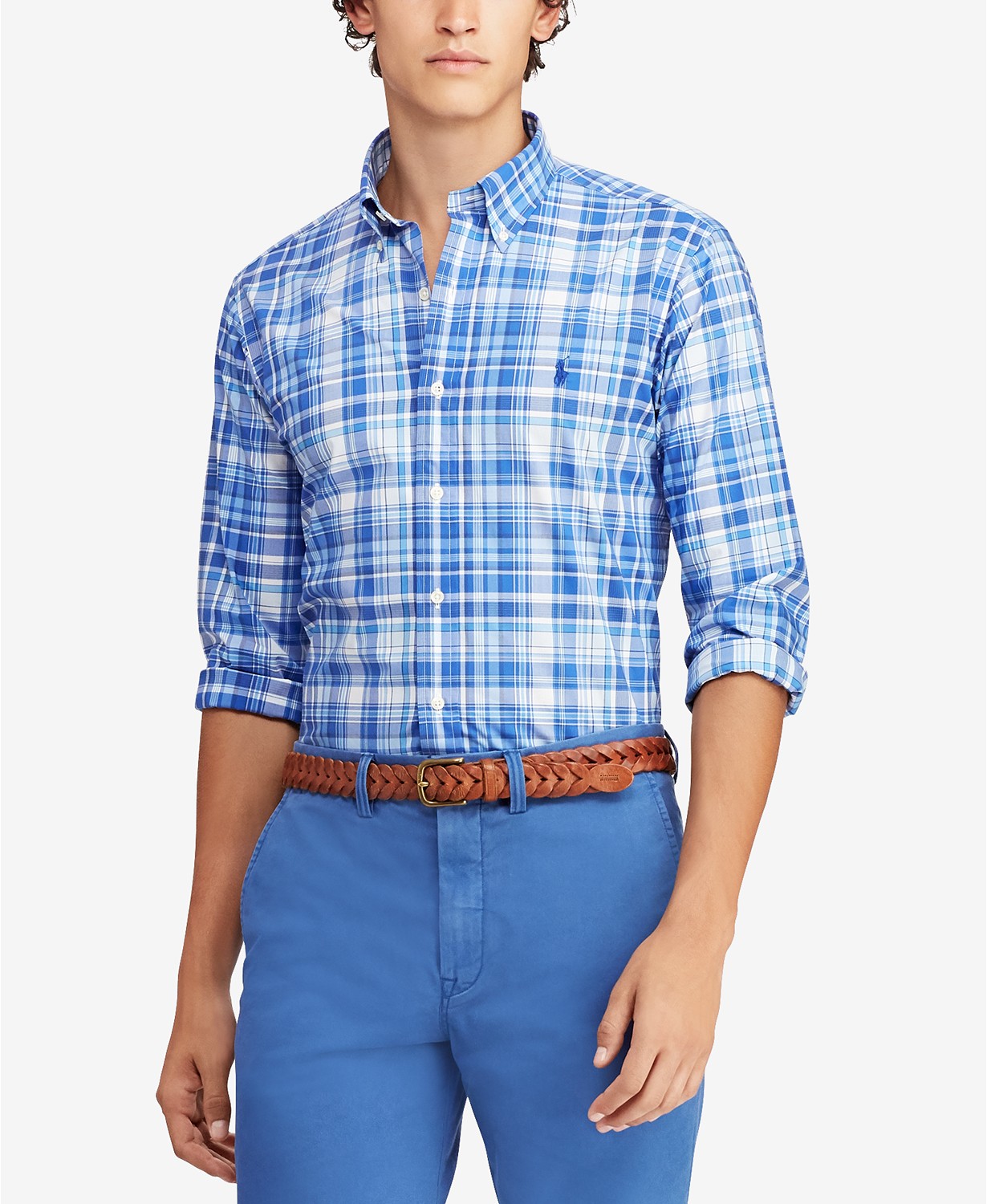 Áo sơ mi nam Polo Ralp lauren caro xanh trắng logo ngựa xanh