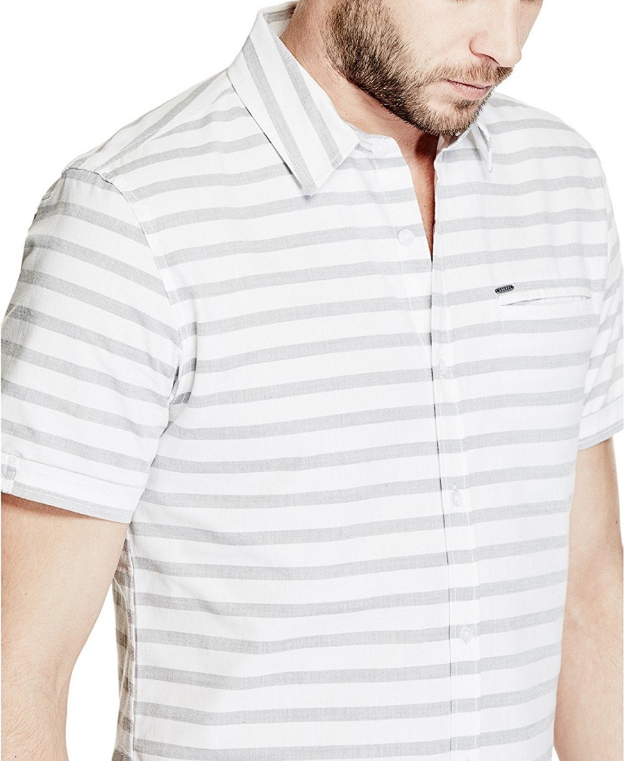 Áo sơ mi Guess ngắn tay sọc trắng đen