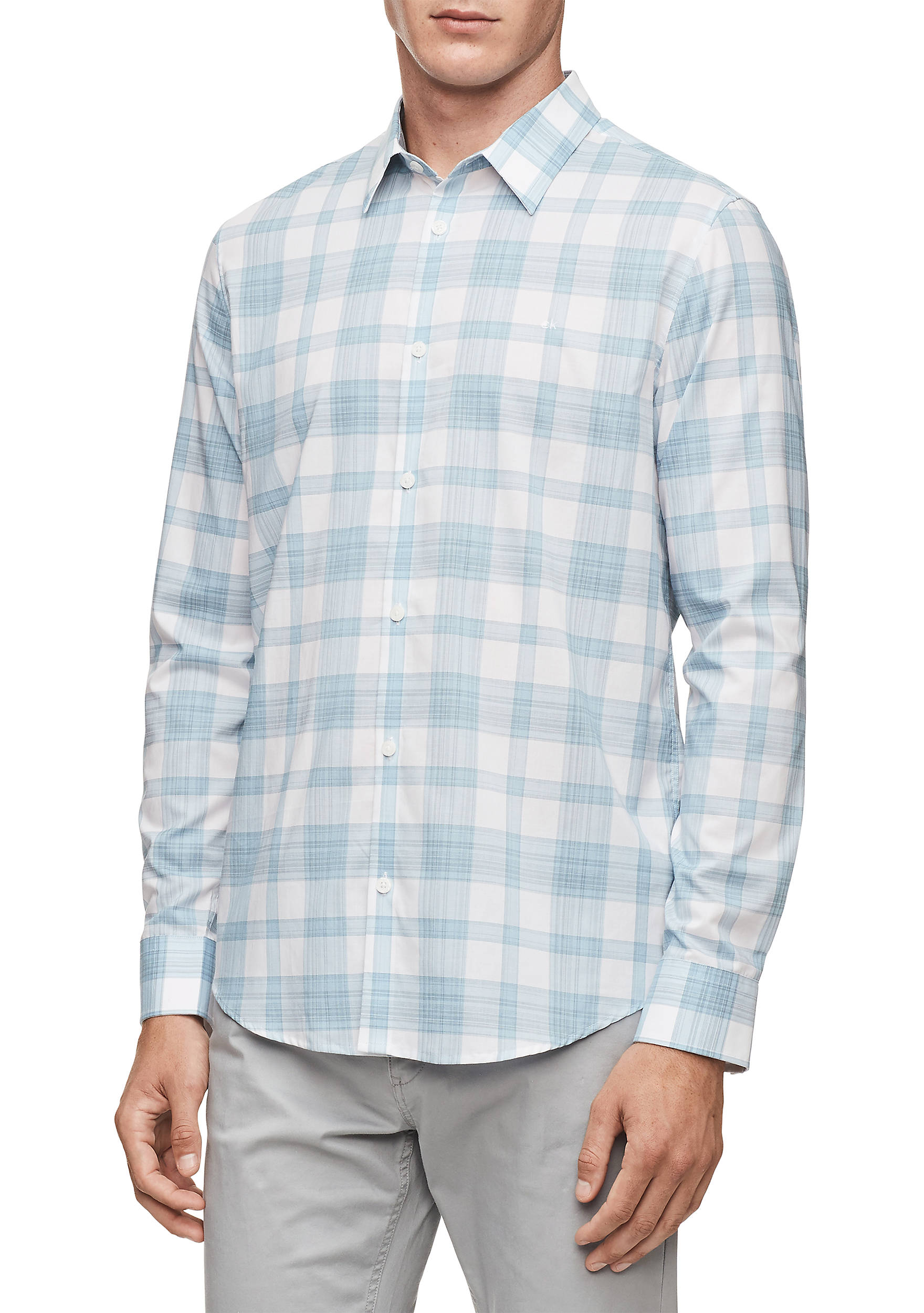 Áo sơ mi nam calvin klein tay dài caro xanh trắng