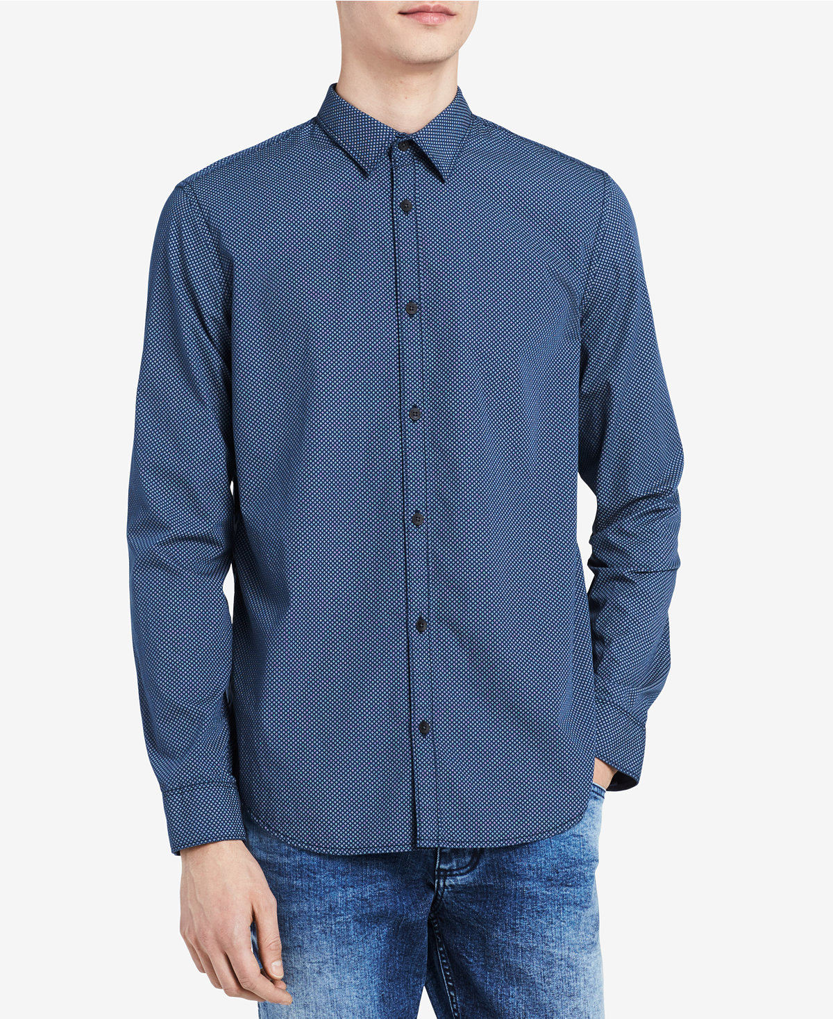 Áo sơ mi nam calvin klein Jeans tay dài xanh chấm bi trắng