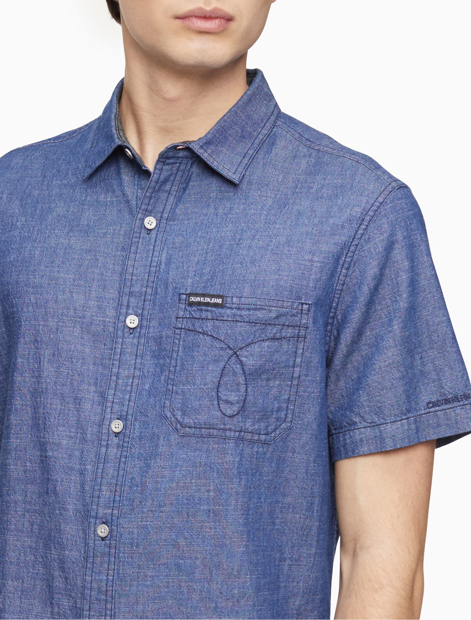 Áo sơ mi nam calvin klein jeans tay ngắn xanh Jeans 1 túi