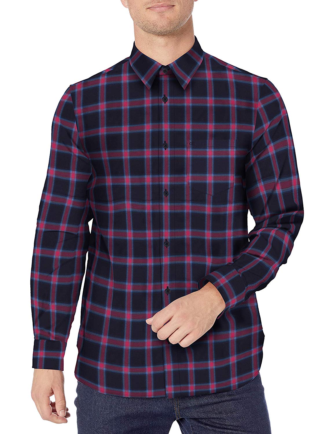 Áo sơ mi nam calvin klein tay dài caro đen phối wash đỏ có túi with Logo