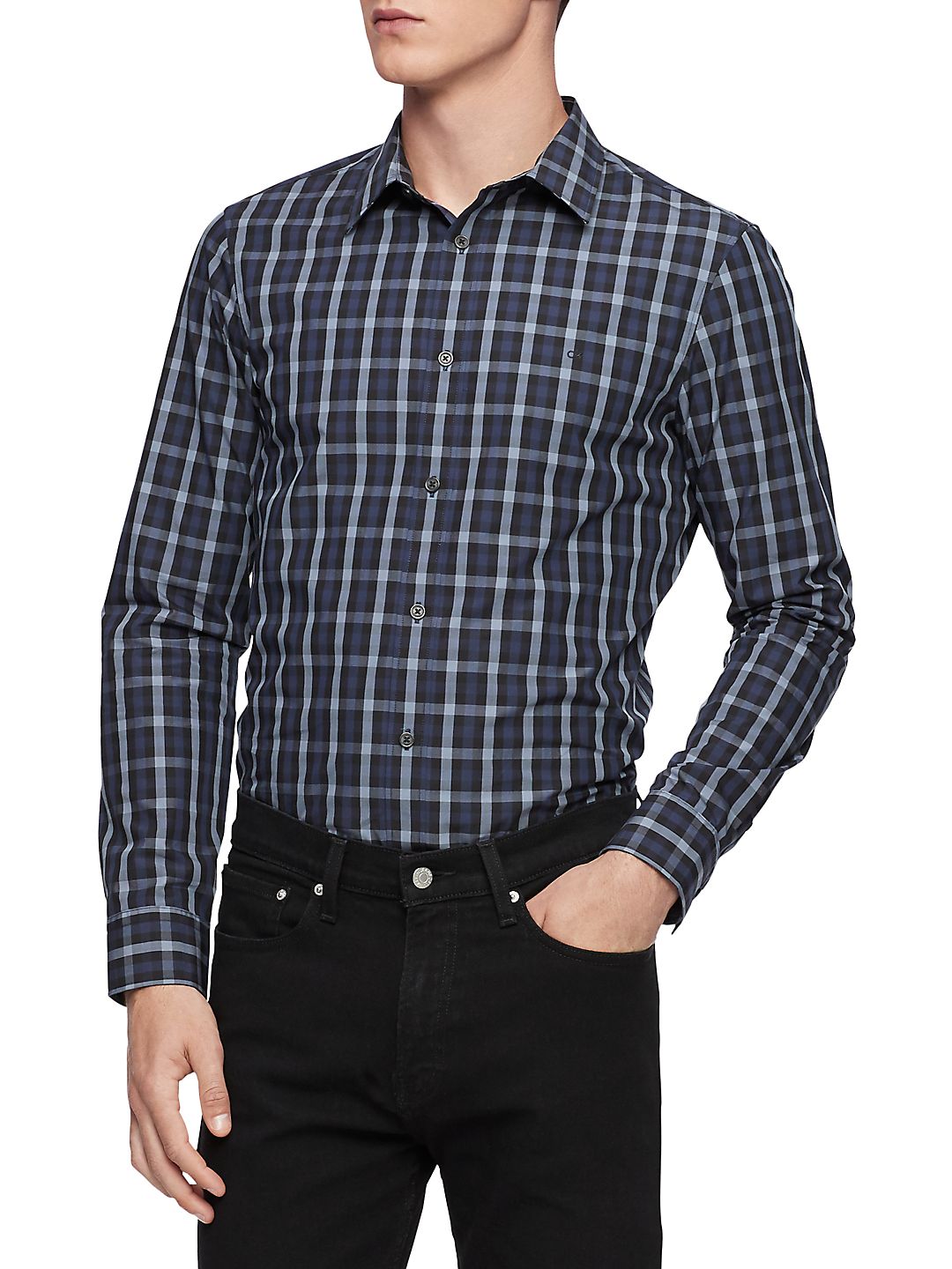 Áo sơ mi nam calvin klein tay dài caro đen xám with logo