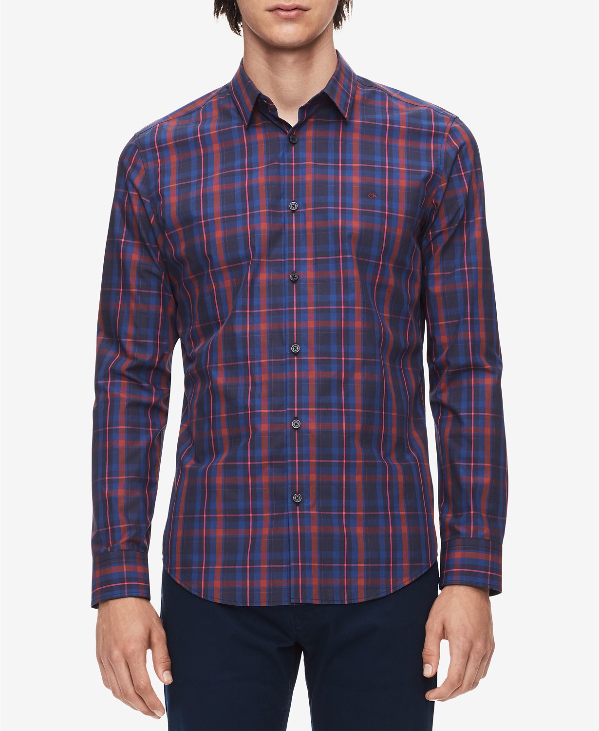 Áo sơ mi nam calvin klein tay dài caro xanh đỏ phối with logo đỏ
