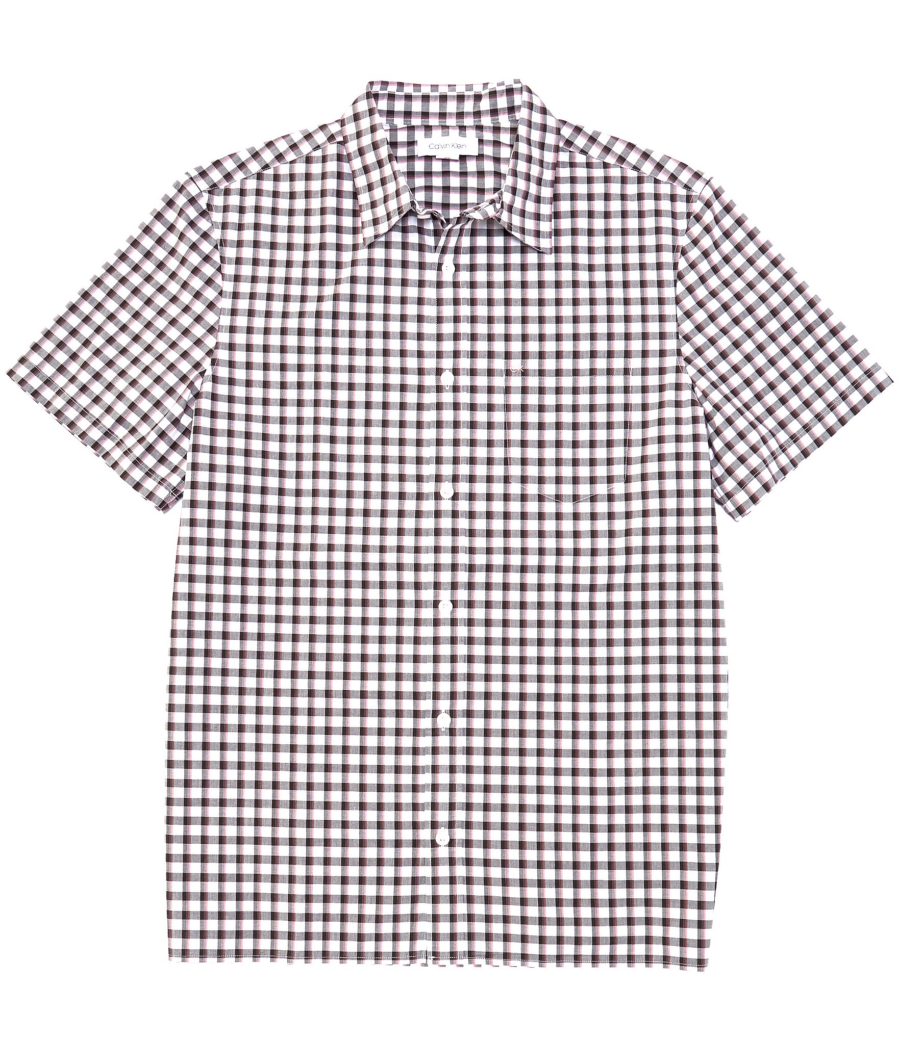 Áo sơ mi nam calvin klein tay ngắn trắng caro nâu đỏ vạt ngang with túi