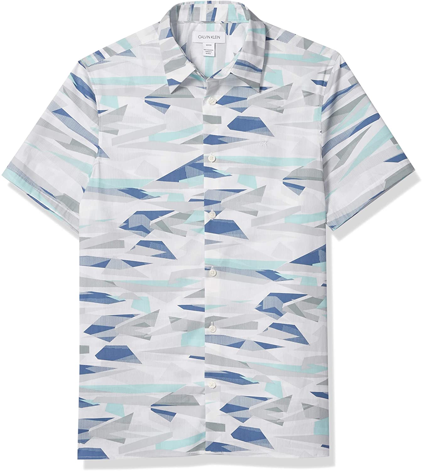 Áo sơ mi nam calvin klein tay ngắn xah trắng phối xanh vạt ngang