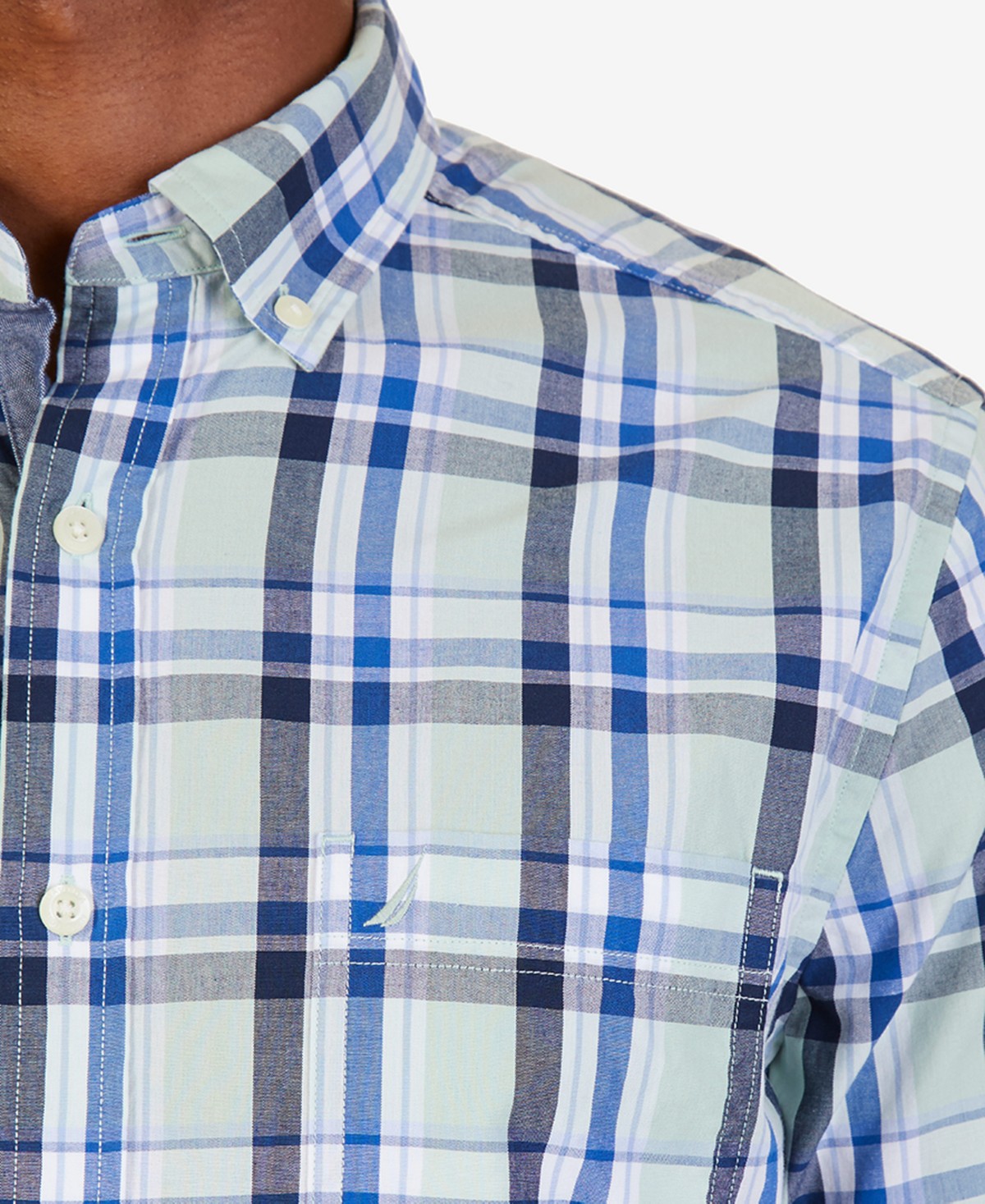 Áo sơ mi nam Nautica tay dài caro trắng xanh lá