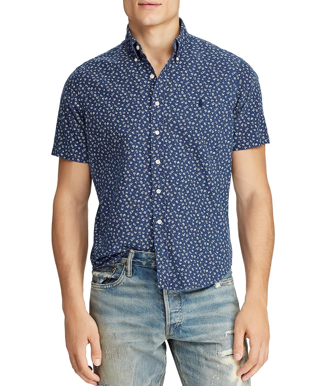 Áo sơ mi nam Polo Ralph lauren ngắn tay xanh phối hoa