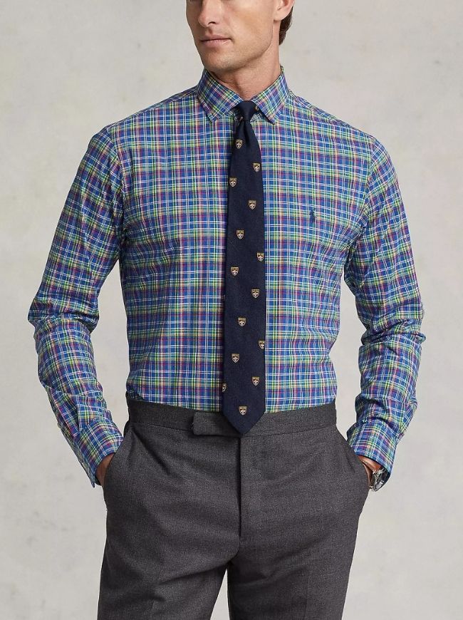 Mẫu áo sơ mi nam tay dài Polo Ralph Lauren với thiết kế kẻ caro nổi bật mang đậm phong cách Mỹ cổ điển. Phom dáng classic fit rộng rãi, dễ mặc kết hợp cùng chất liệu stretch poplin co giãn nhẹ, thoáng mát, đem đến cảm giác thoải mái tối đa cho người mặc thích hợp dù là đi làm, dự sự kiện hay dạo phố.