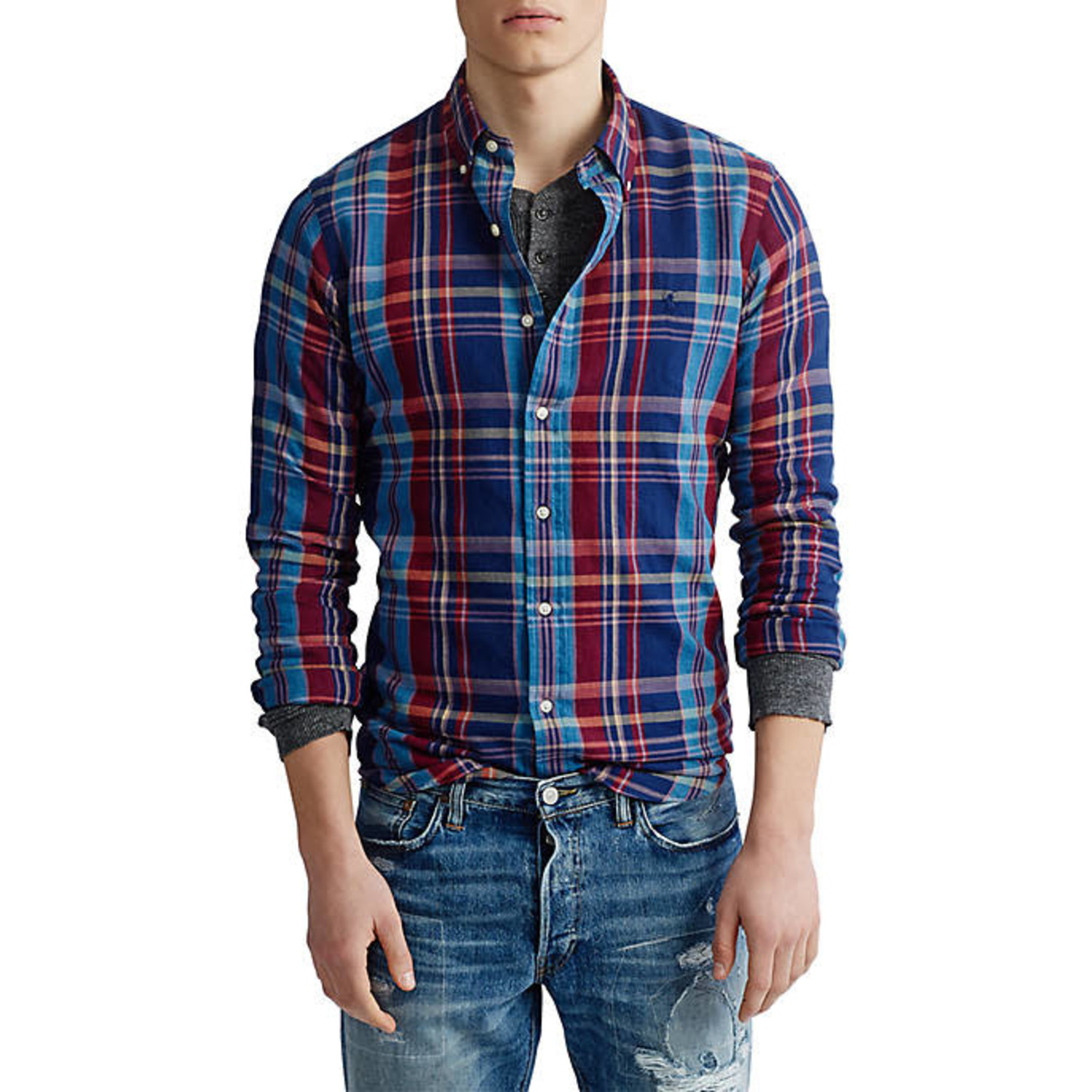 Áo sơ mi Nam Polo Ralph lauren tay dài caro xanh navy đỏ