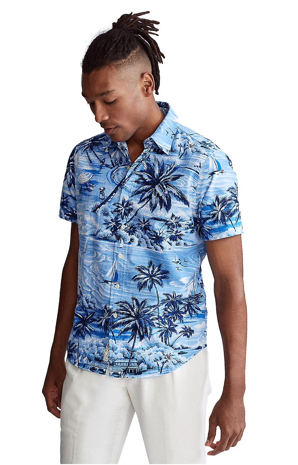 Áo sơ mi nam Polo Ralph lauren tay ngắn xanh biển phối