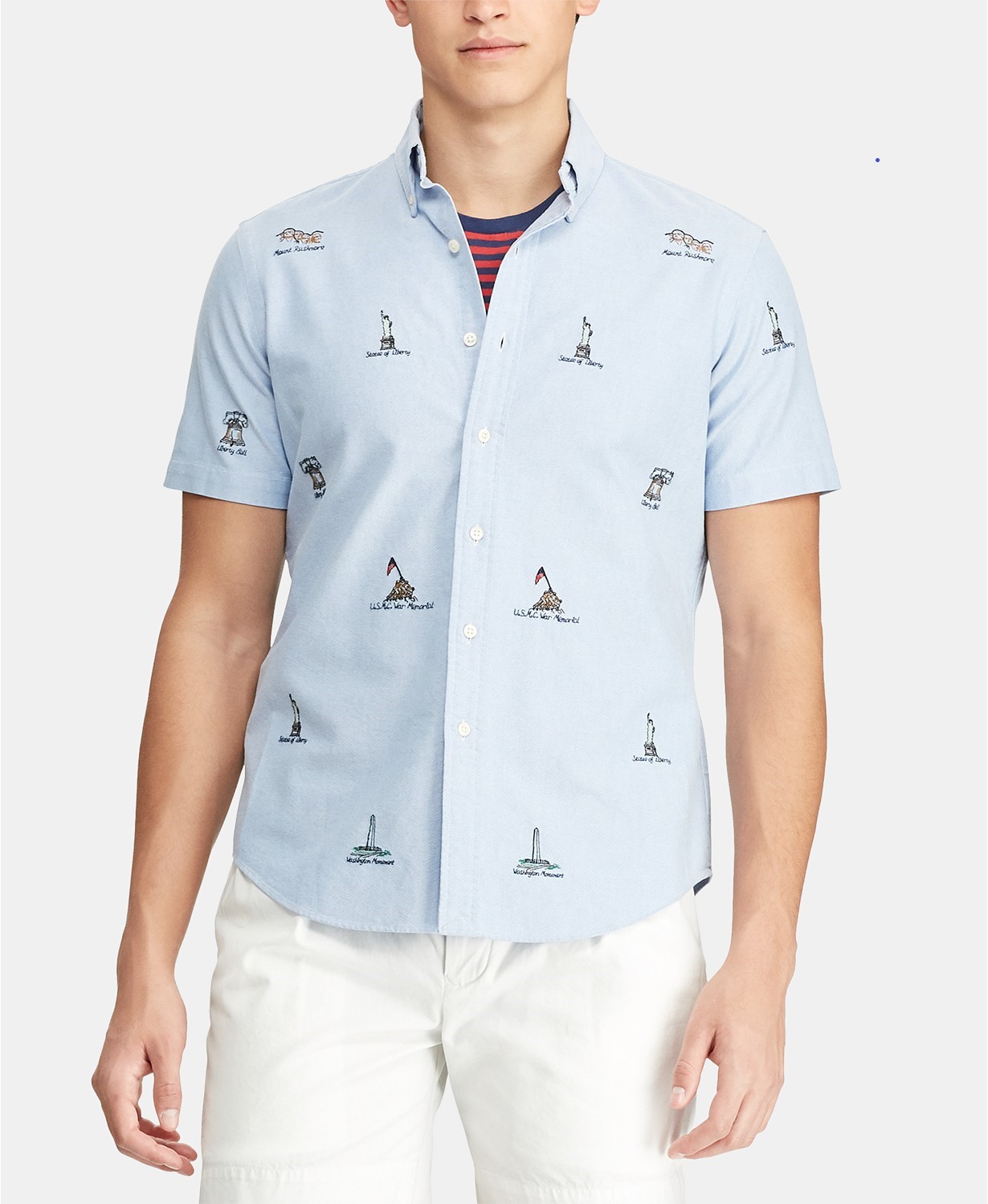 Áo sơ mi nam Polo Ralph lauren tay ngắn xanh phối chữ thêu
