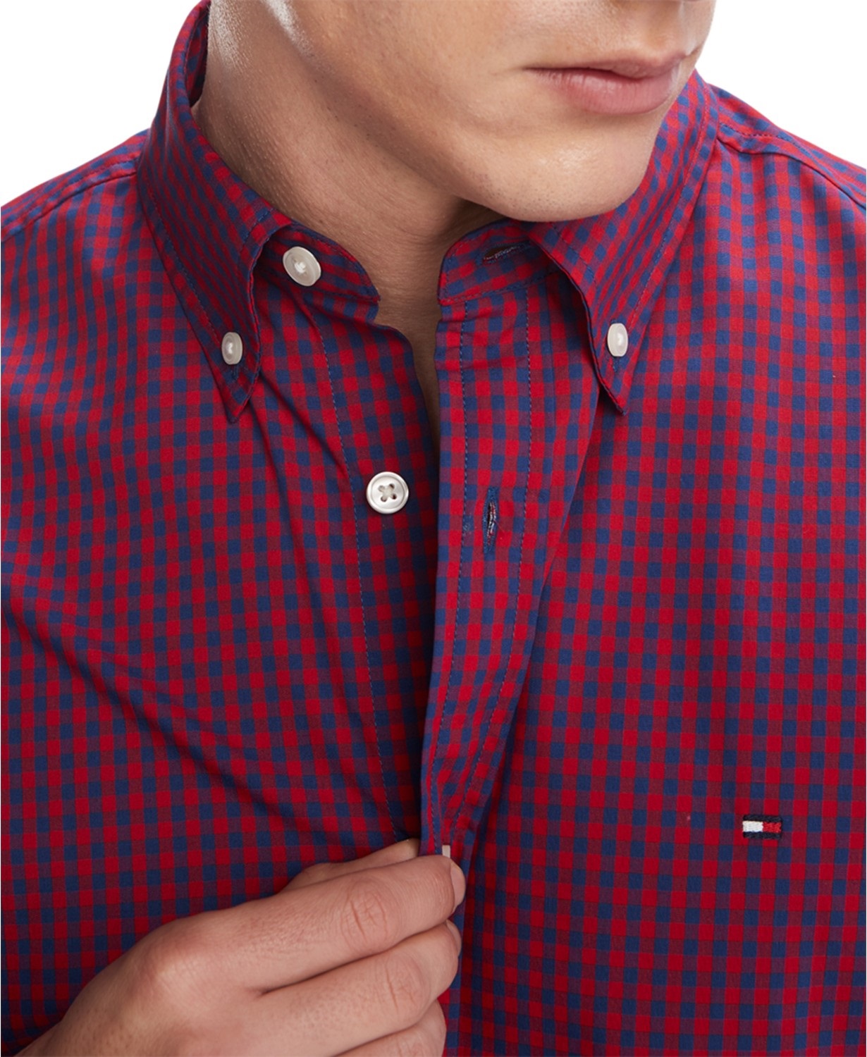 Áo sơ mi nam Tommy Hilfiger tay dài caro đỏ xanh Hàng xách tay USA - 100% Cotton - regular Fit Made in : India