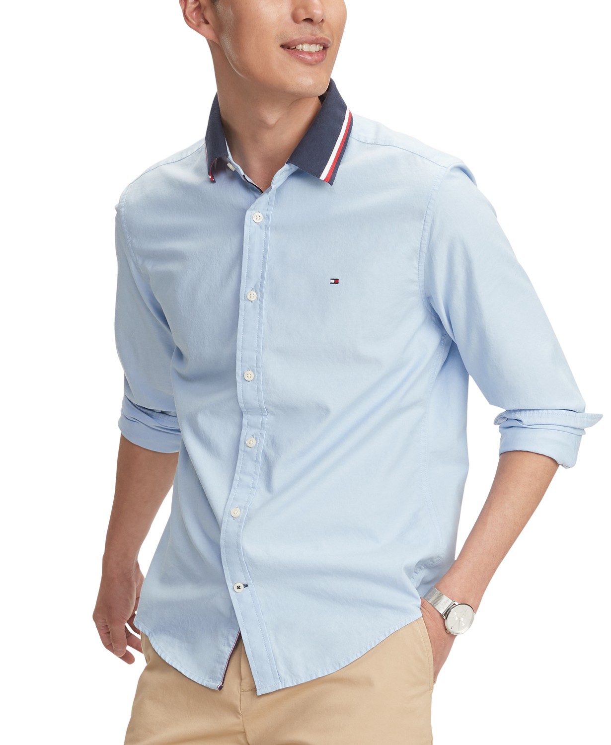 Áo sơ mi nam Tommy Hilfiger tay dài trắng cổ phối