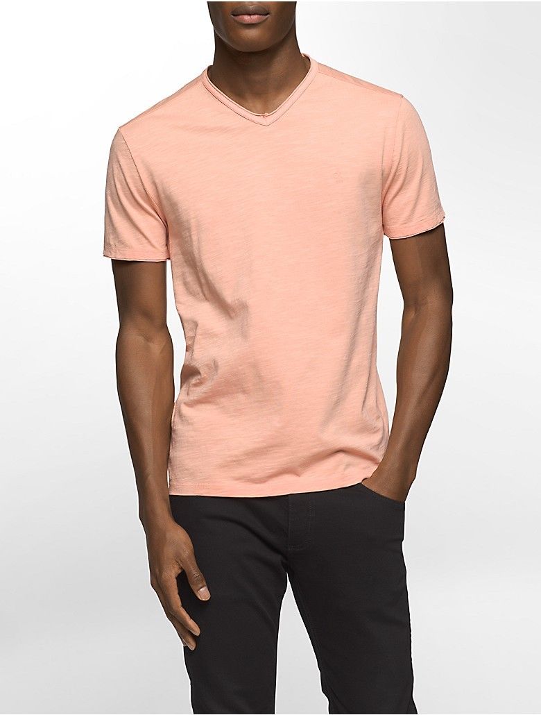 Áo thun Calvin Klein - CK T.shrit không cổ màu vàng Hàng xách tay từ Mỹ. Áo cổ tim Chất Cotton 100% Made in: India