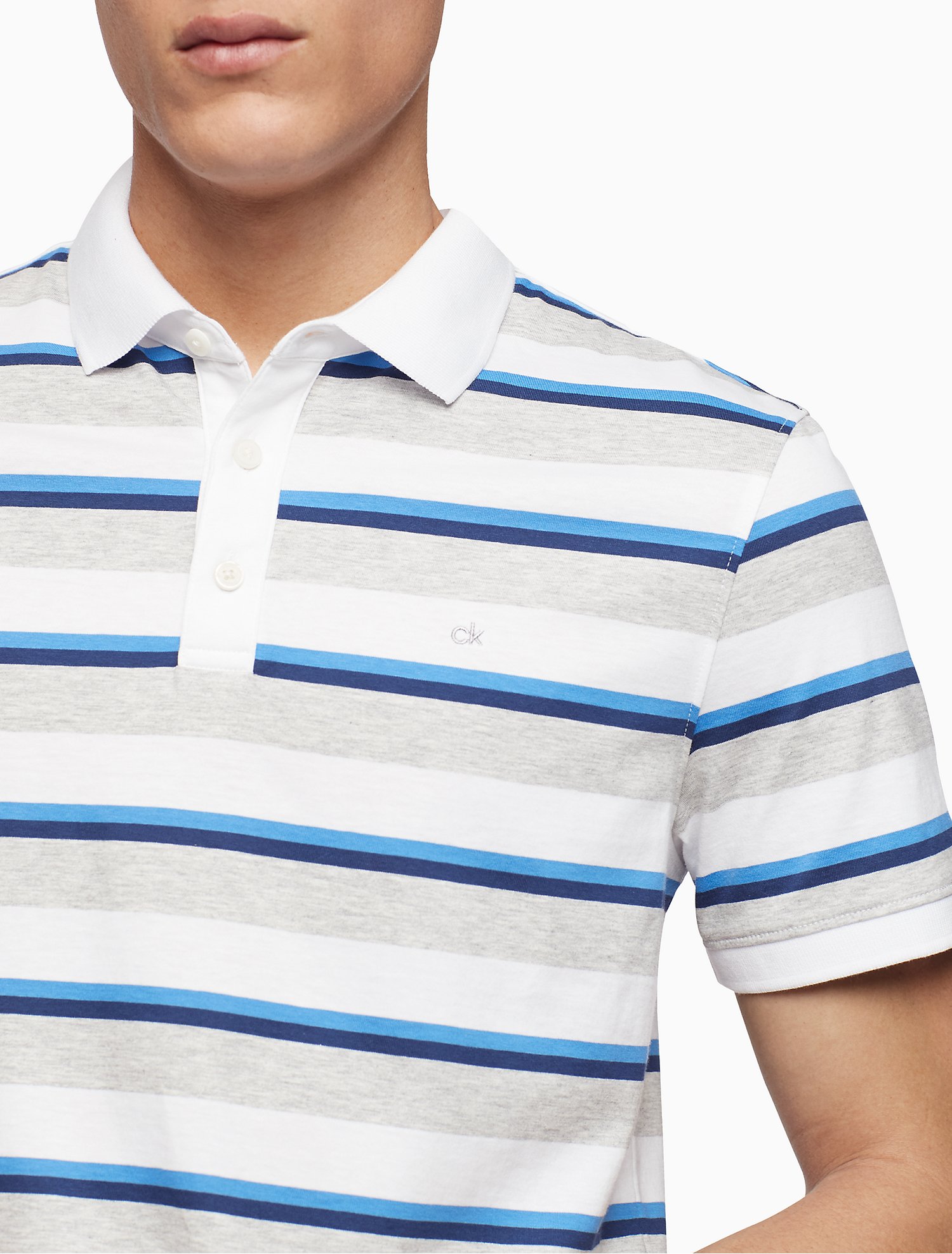 Áo thun nam calvin klein trắng phối sọc ngang xanh xám