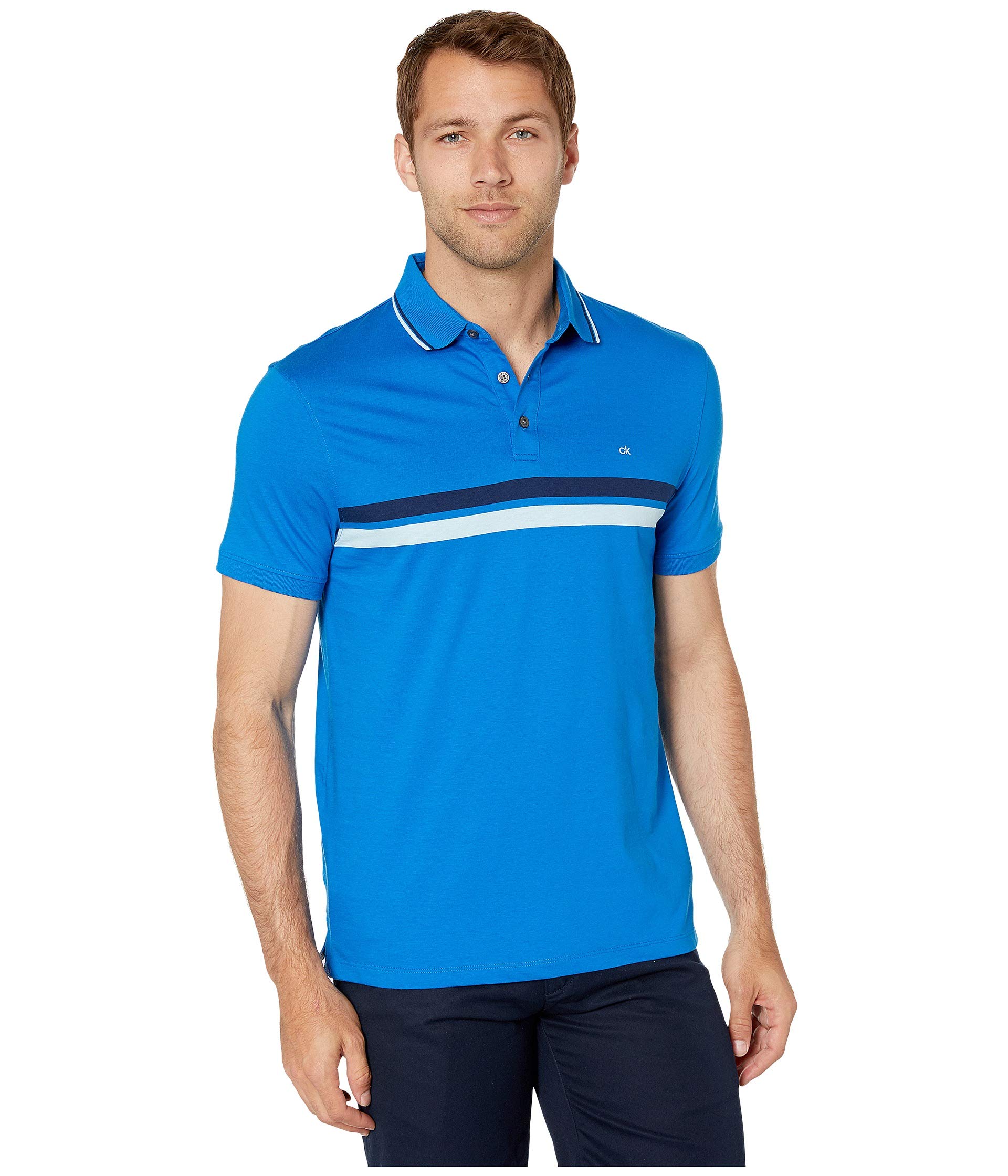 Áo thun nam calvin klein xanh phối sọc ngang cổ viền