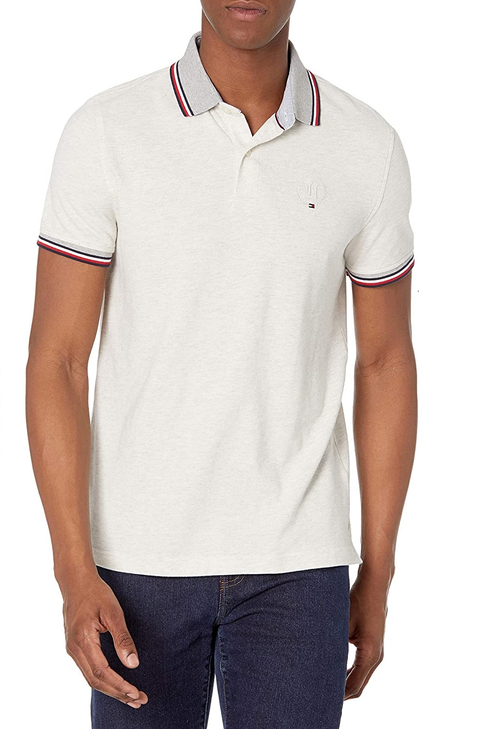 Áo thun nam Tommy Hilfiger trắng xám phối Logo mới.