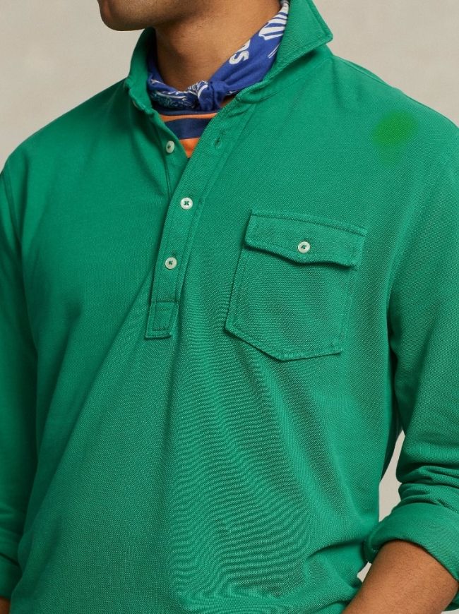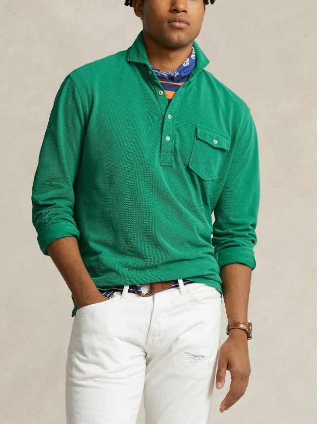 Mẫu áo thun nam tay dài Polo Ralph Lauren là sự hòa quyện giữa phong cách thể thao lịch lãm và sự thoải mái của chất liệu cotton tự nhiên. Thiết kế classic fit truyền thống dễ mặc, phù hợp nhiều vóc dáng. Điểm nhấn túi ngực phối nút và hàng cúc cổ tạo nên sự khác biệt, thanh lịch nhưng không kém phần cá tính. Mẫu thun tay dài thêm nhiều lựa chọn cho các anh trong tuần đỡ phải suy nghĩ mặc gì.
