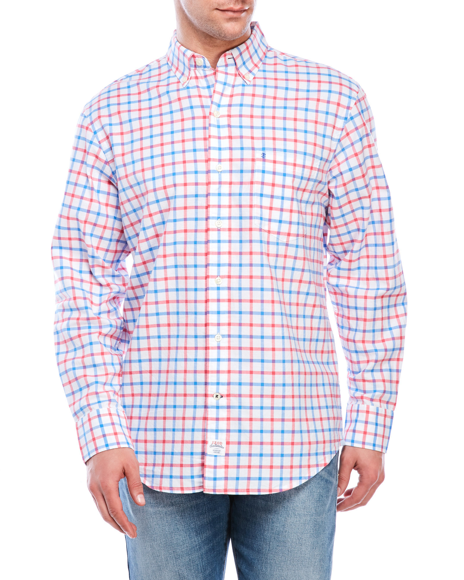 Izod Áo Nam dài tay Saltwater Plaid Oxford Shirt Caro đỏ - cam S,M,L