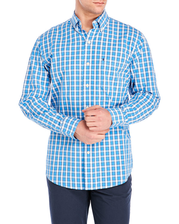 Izod Áo Nam dài tay Saltwater Plaid Oxford Shirt Caro xanh - S-M