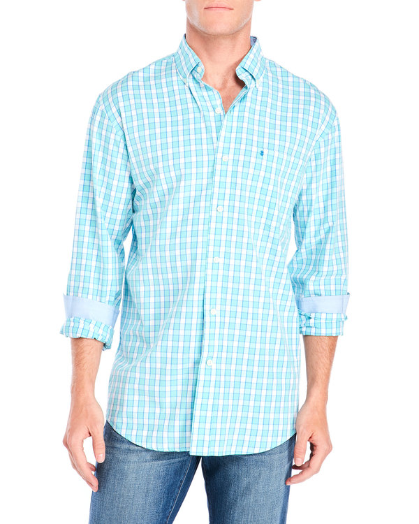 Izod Áo Nam dài tay Saltwater Plaid Oxford Shirt Caro xanh lá cây- S-M