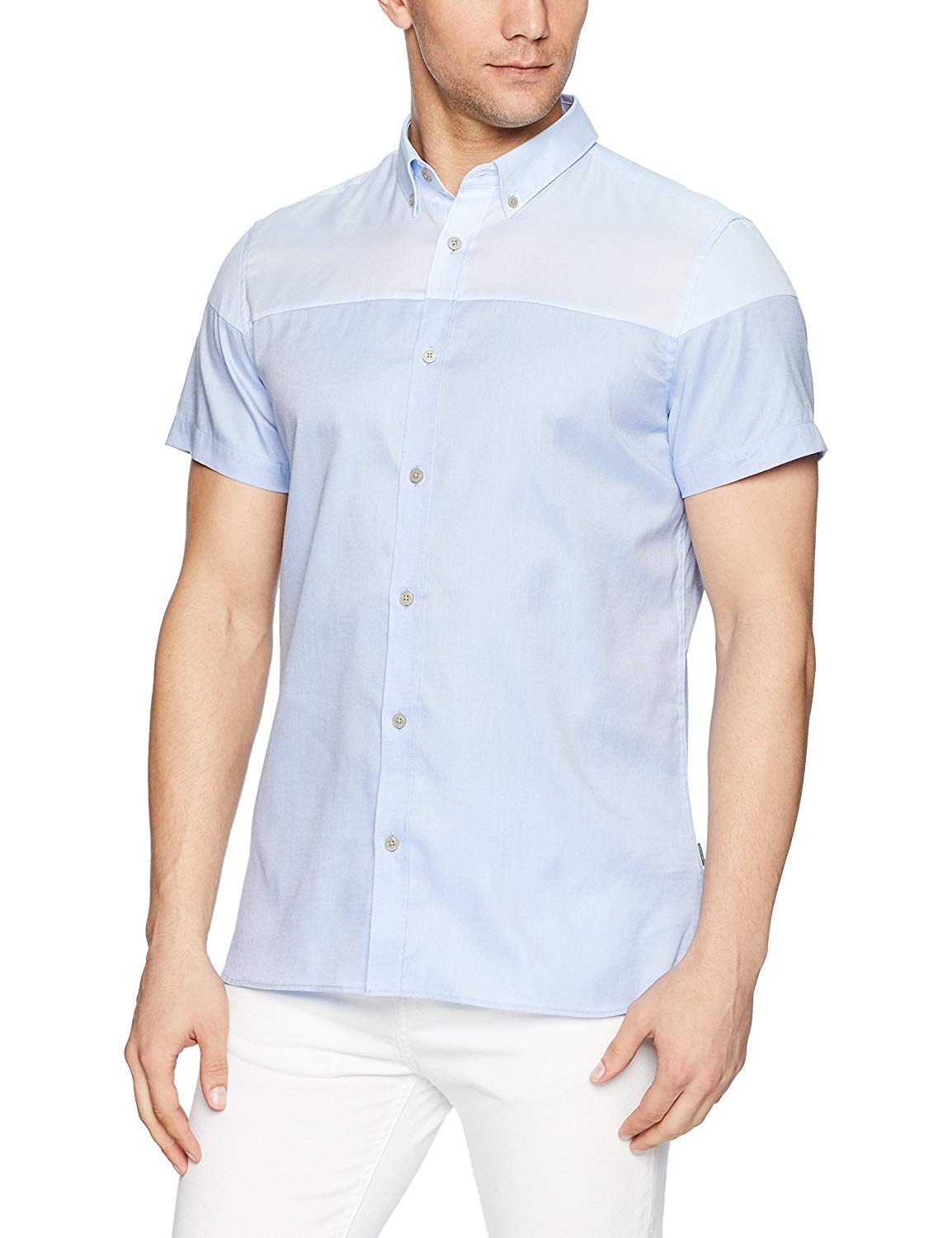 Áo sơ mi nam Calvin Klein ngắn tay xanh trắng 2 màu