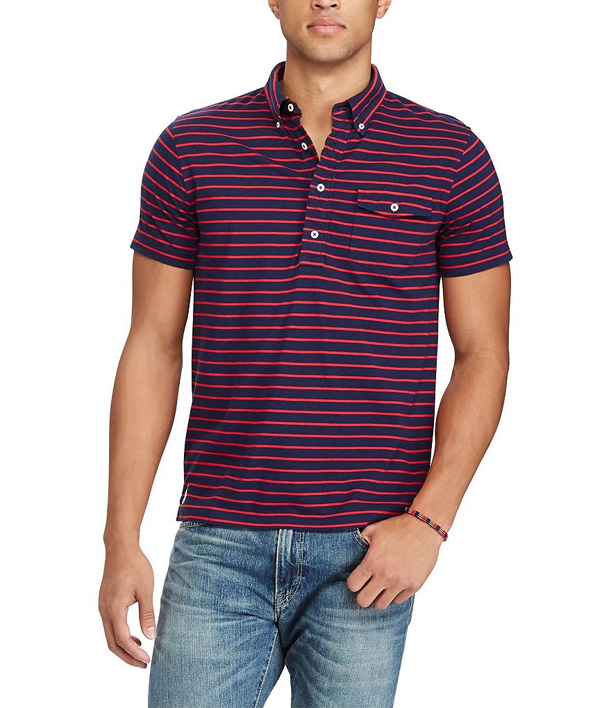 Áo thun Nam Polo Ralph Lauren - xanh đen sọc ngang đỏ